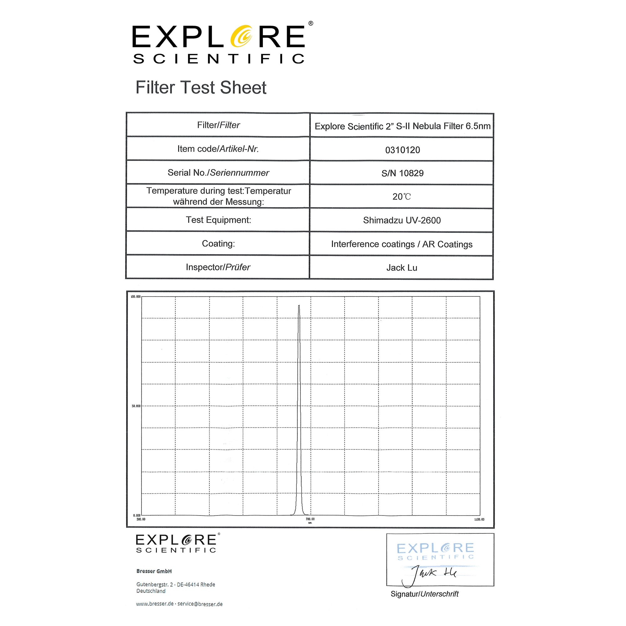 - High quality Explore Scientific S-II filter