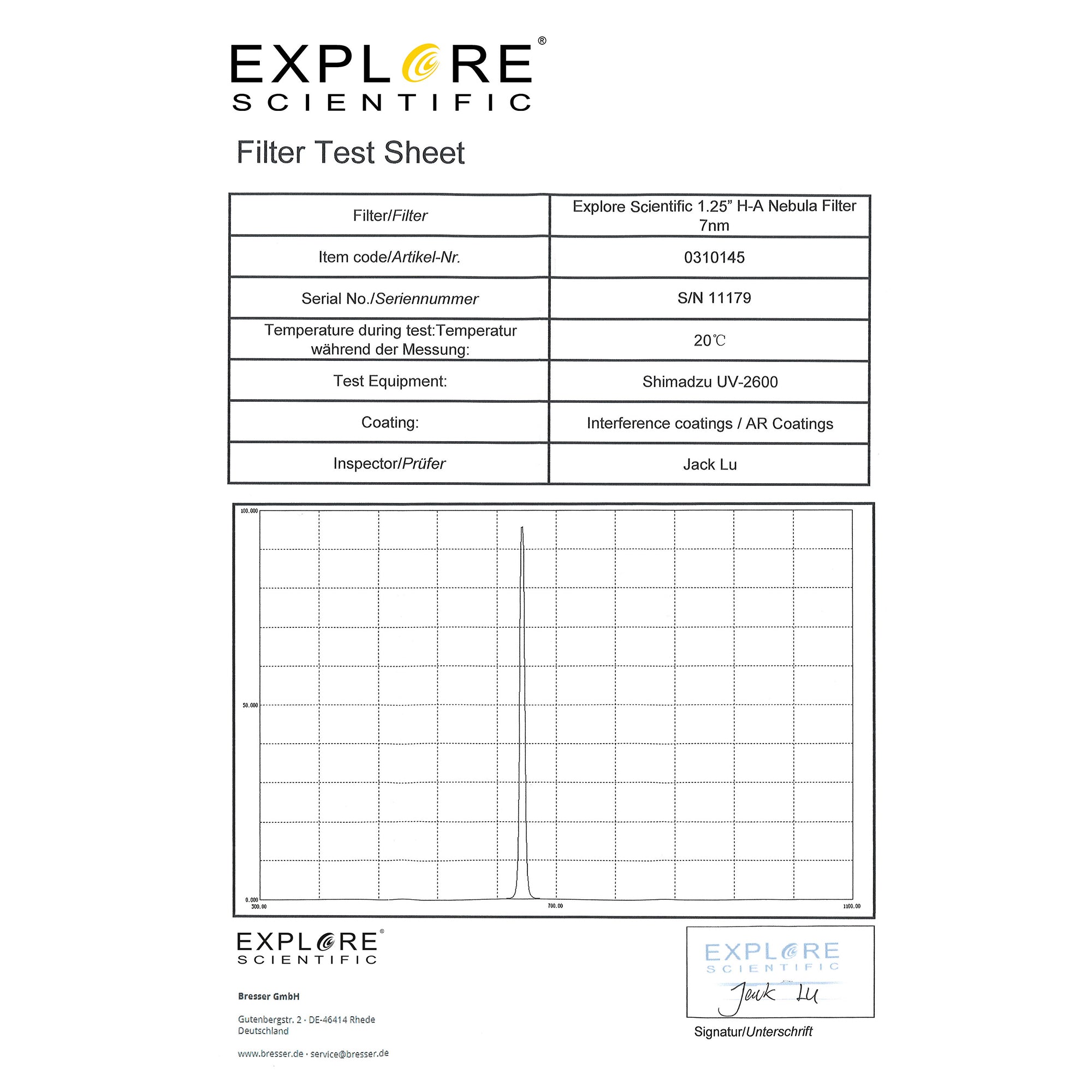 Les filtres à brume scientifique Explore sont fournis avec un rapport de test individuel - vous pouvez donc être sûr que vous recevez des filtres de haute qualité.