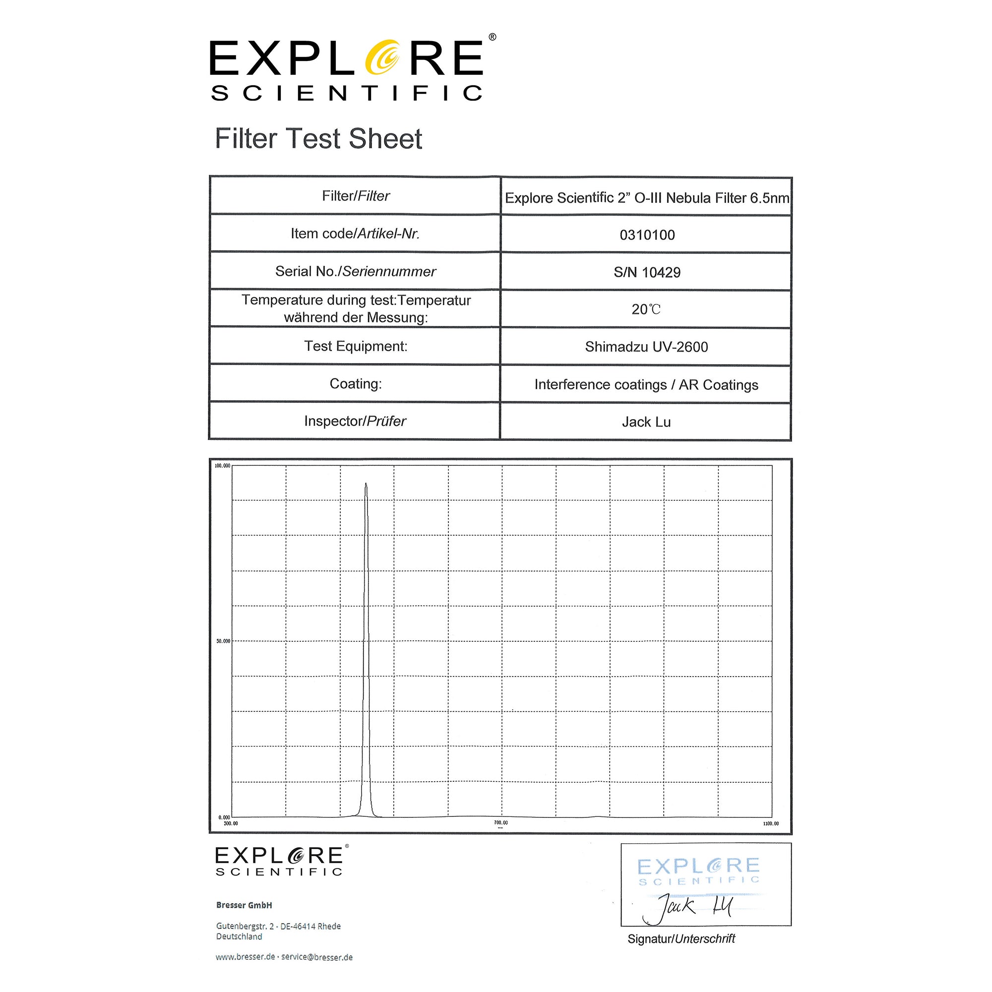 The Explore Scientific mist filters are supplied with an individual test report - so you can be sure that you are receiving high-quality filters.